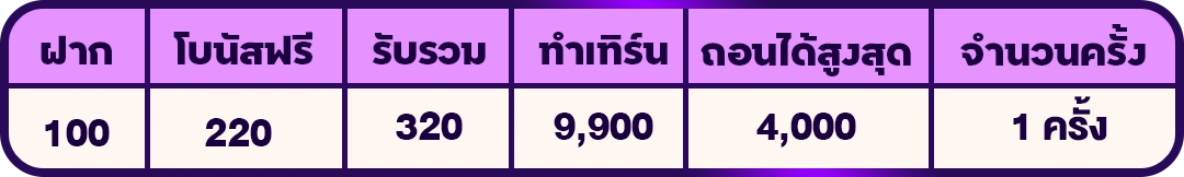 ✅ฝาก 100 รับโบนัสฟรี 220 รวมเป็น 320